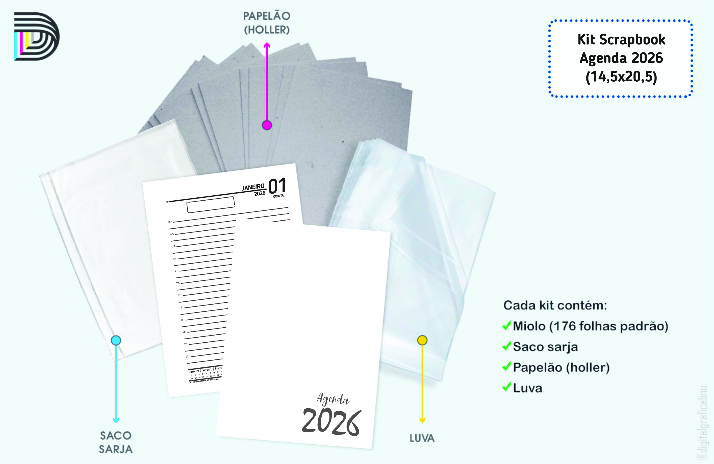 O kit para scrapbook Miolo de Agenda 2026 contém: